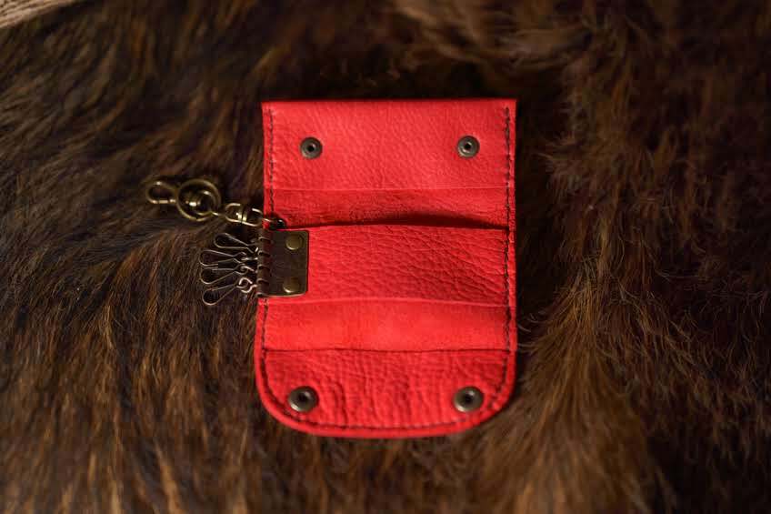 全て手作業の総手縫い、4つの鍵が掛けられるキーケースです。